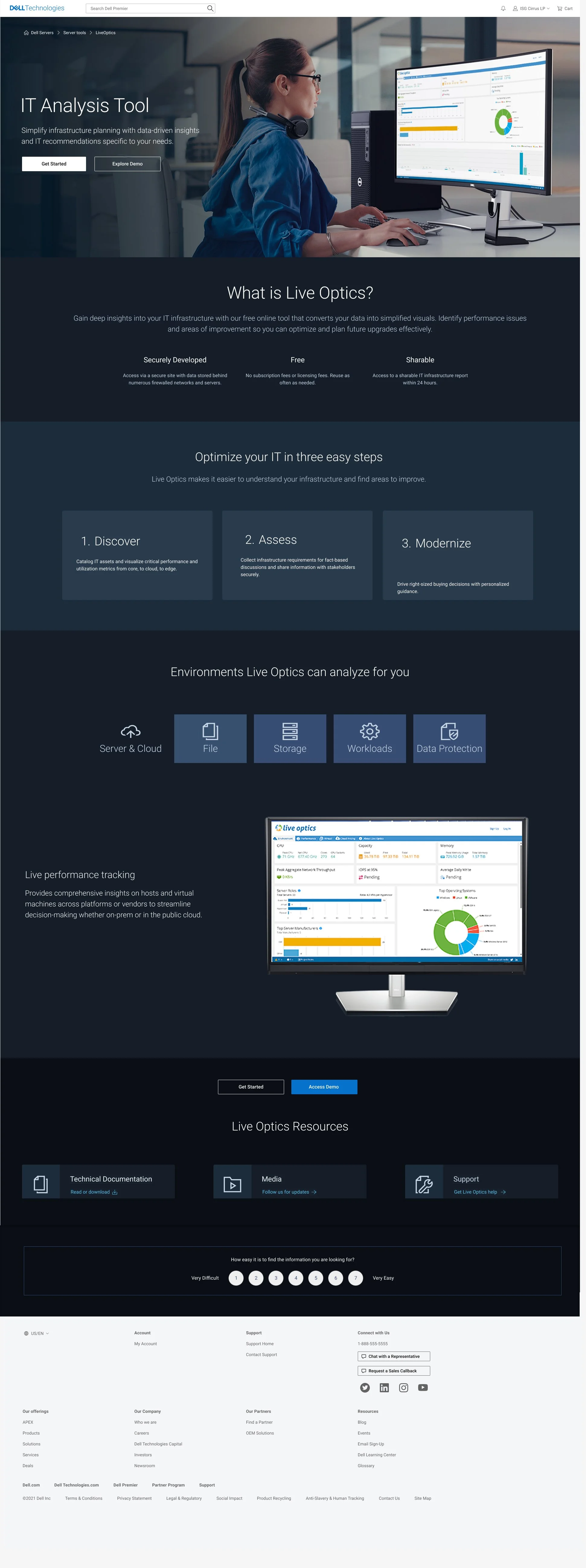 Live Optics is Dell’s free, agentless infrastructure planning tool that helps IT teams discover, assess, and modernize their IT environments using performance data and visual reporting. While widely used by tech insiders, the tool lacked clarity and presence on Dell.com.